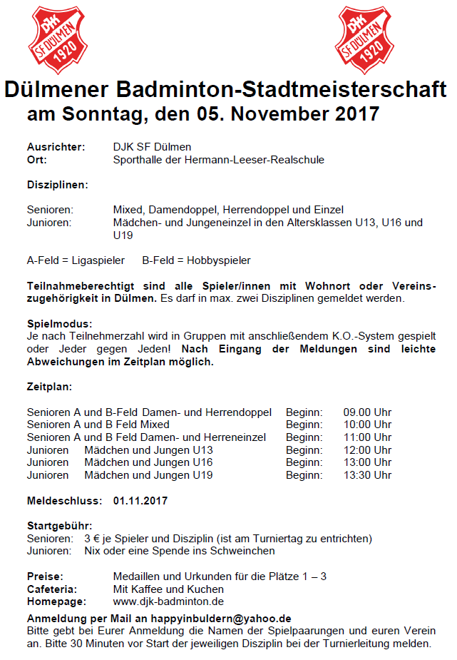 DJK SF Dülmen - Badminton- in der Breite Spitze -